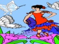 Игра Dancer Photos - раскраска для девочек. Une danseuse comme un Thumbelina. Elle marche sur des fleurs énormes entourés par des géants papillons.